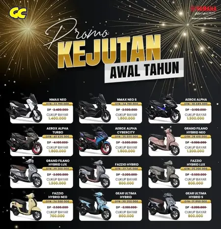 Dapatkan promo terbaik pembelian motor Yamaha anda, Sales terbaik kami akan membantu memenuhi kebutuhan motor anda, Proses cepat dan mudah dengan harga terbaik, DP minim, cicilan rendah serta tambahan diskon dan bonus lainya :